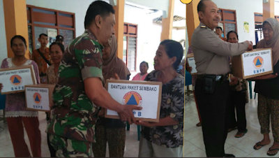 Magetan, seputarkita – BNPB Kabupaten Magetan, kamis 15/2/2018, meyerahkan bantuan 125 paket sembako ke warga Desa Ngelang Kecamatan Kartoharjo Kabupaten Magetan yang terkena bencana banjir
