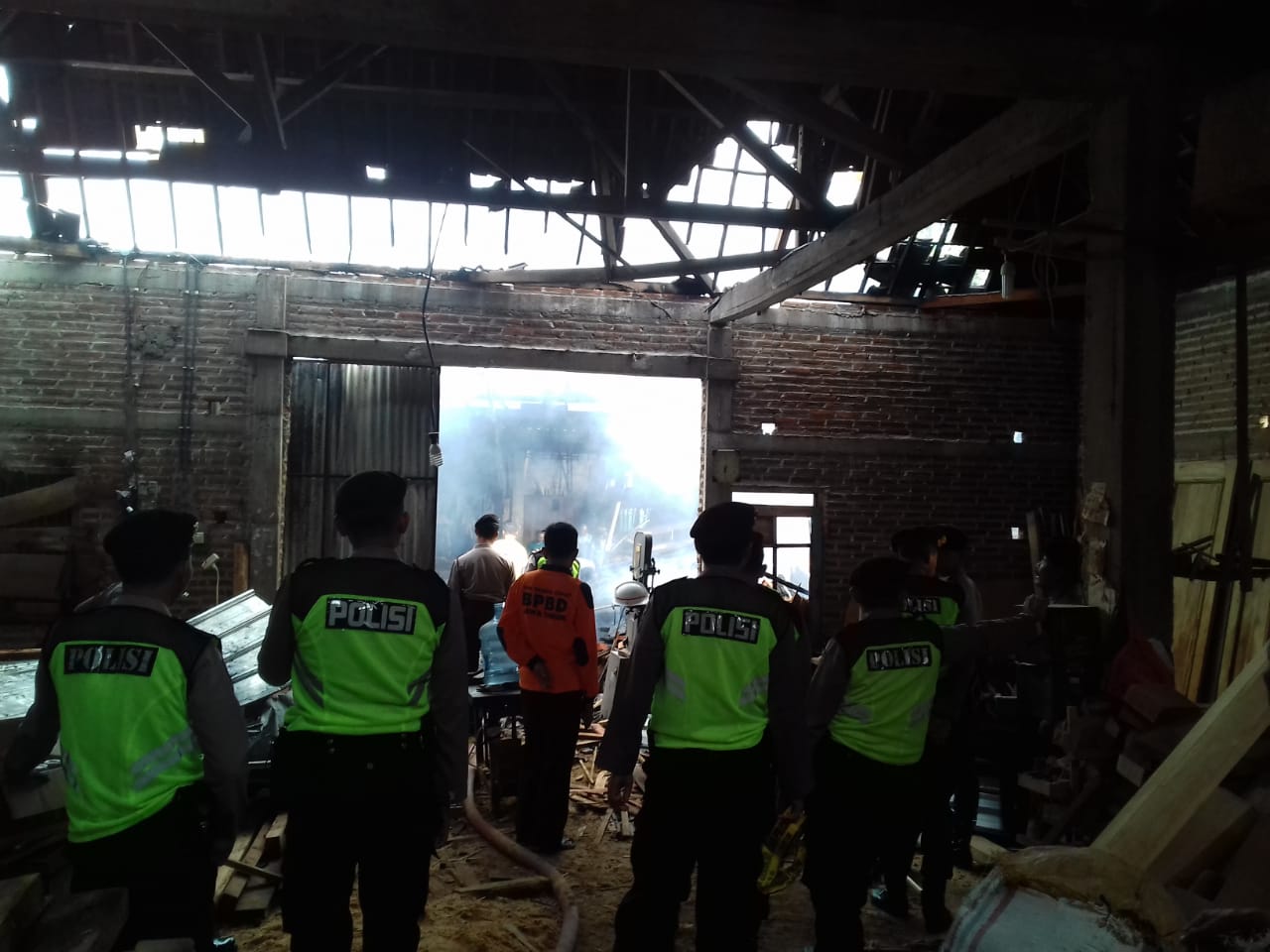 Gudang kayu UD SALAM yang berada di jalan Imam Bonjol Dukuh Mancakan RT 02 RW 03 Kelurahan Paju Kecamatan/Kabupaten Ponorogo ludes dilalap api, Senen (26/11).