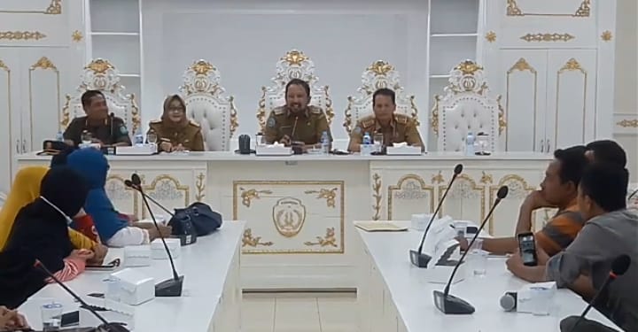 Mereka yang berjumlah sekitar 17 pedagang eks pasar stasiun pun langsung diterima oleh Bupati Ponorogo Drs Ipong Muchlissoni bersama pejabat lainnya di ruang Bantarangin.
