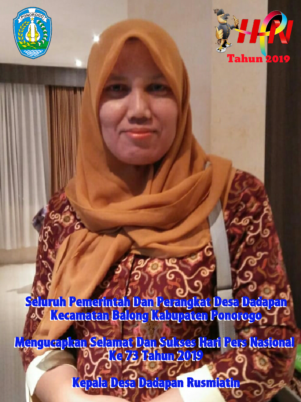 Seluruh Pemerintah Dan Perangkat Desa Dadapan Kecamatan Balong Kabupaten Ponorogo, Mengucapkan Selamat Dan Sukses Hari Pers Nasional Ke 73 Tahun 2019
