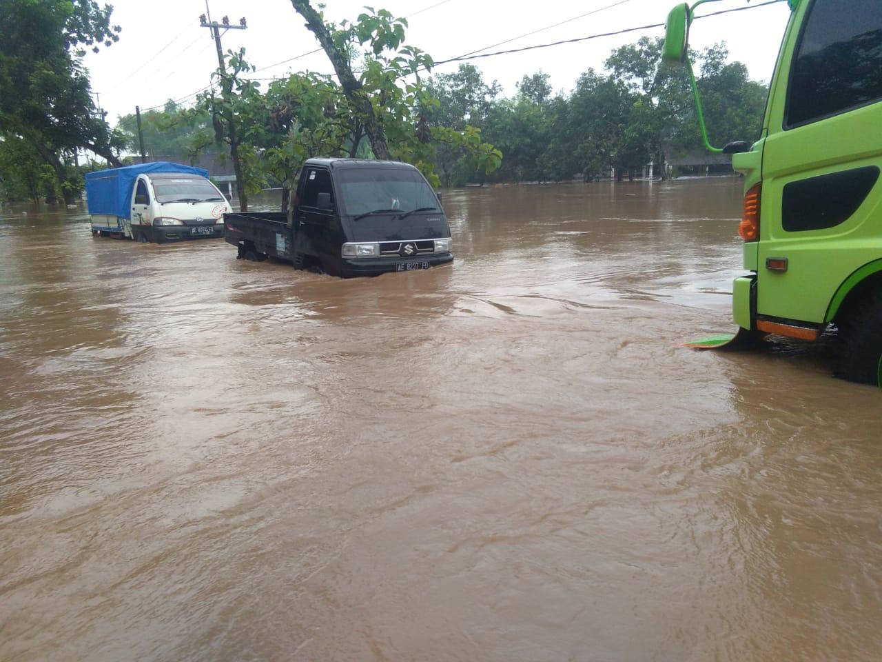Ds. Sugihwaras air sungai meluap sampai dengan jalan raya Madiun – Surabaya, Pkl 03.30 air sudah surut
