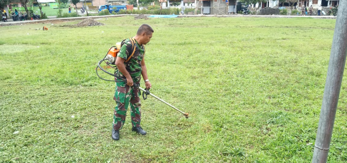 “Kita juga membantu masyarakat membersihkan lingkungan di sekitar lapangan yang akan digunakan untuk upacara penutupan dan sepanjang jalan yang nantinya akan dilalui para undangan dalam acara penutupan TMMD” Ujar Kasdim.