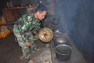 Seperti yang dilakukan Sertu Tukiyo, disela-sela waktu istirahatnya anggota Satgas TMMD ini tinggal dirumah orang tua asuh, menyatu dengan warga sehingga dapat merasakan kebersamaan dengan warga layaknya sebuah keluarga sendiri. Hal ini yang dilakukannya ketika beristirahat dirumah ia menginap, membantu memasak maupun mengupas jagung, hal inilah yang dapat dirasakan warga sebagai wujud kebersamaan dan kemanunggalan TNI dan Rakyat di lokasi Desa Poncol. (Tsr)