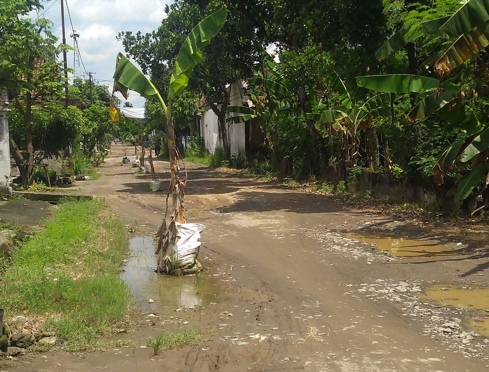 Kerusakan ini disebabkan oleh faktor usia jalan dan selama 1 periode yang lalu pemerintahan kepala desa sampai periode yang sekarang masih juga belum ada tindakan perawatan jalan maupun perbaikan.