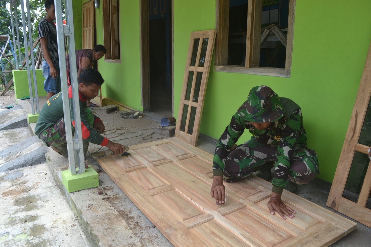 Saat ini persentase bedah rumah di sasaran TMMD ke 104 Kodim 080/Magetan sudah memasuki tahap finishing. Terlihat kesibukan para anggota TNI yang tergabung dalam Satuan Tugas (Satgas) TMMD bergotong Royong dalam pengerjaan bedah rumah untuk mempercepat dalam penyelesaian pembangunan rumah yang hanya tinggal pengerjaan finishing saja salah satunya adalah di rumah Mbah Giyem. (Tsr)
