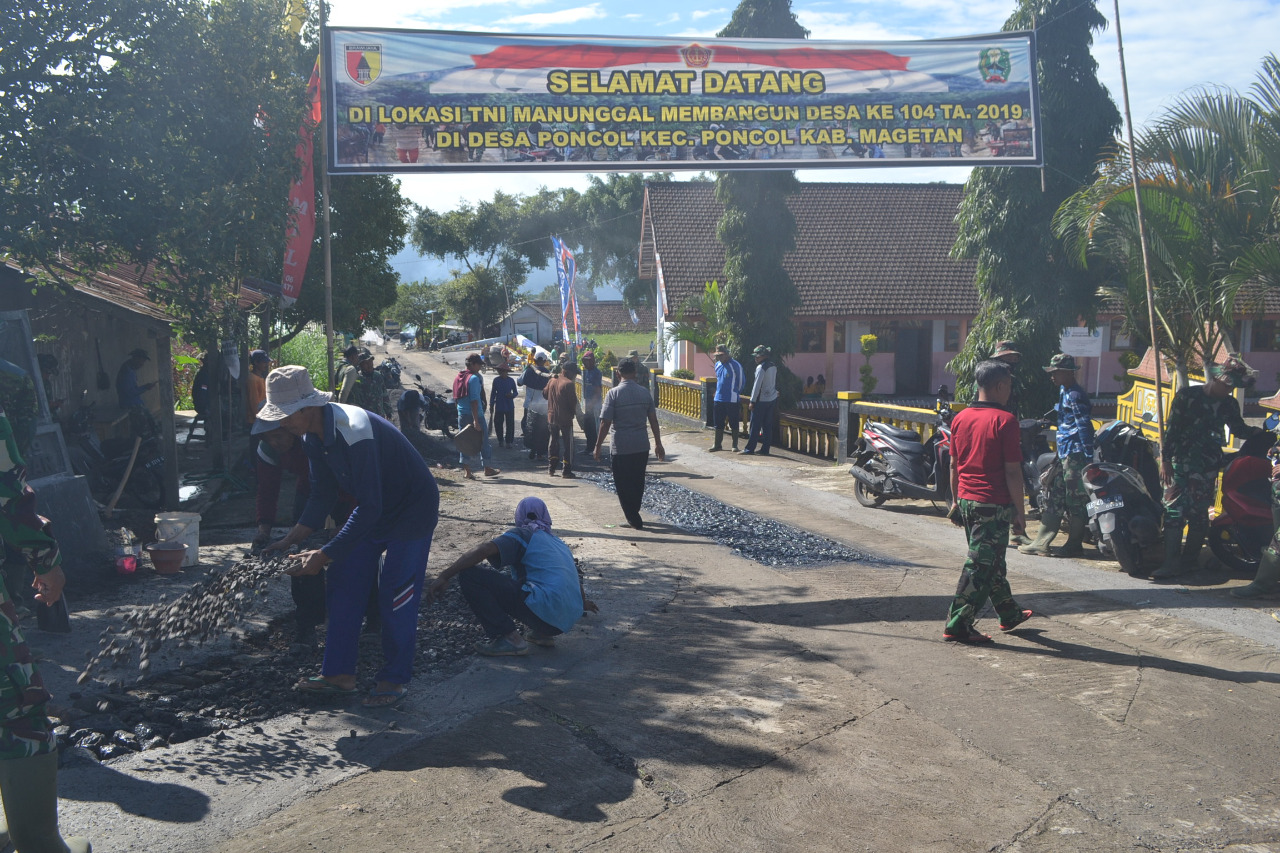 Tugu prasasti TMMD ke-104 Kodim 0804/Magetan ini dibangun dengan tujuan agar warga selalu teringat adanya pelaksanaan program TMMD 104 yang turut membangun desa mereka. Tugu prasasti ini sebagai bukti adanya kemanungalan TNI dengan rakyat untuk membangun demi kemajuan Desa Poncol.