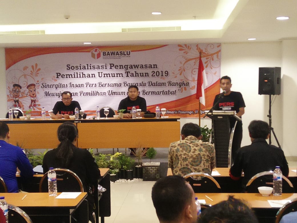 “Pelanggaran pemilu banyak terjadi di pemasangan APK yang tidak sesuai tempat mencapai 1700 pelanggaran, selain itu juga adanya money politic bagi masing masing kontestan. Dan Sosialisasi ini bertujuan untuk mengajak kepada insan pers agar ikut mensukseskan penyelenggaraan Pemilu 2019 dengan menberikan berita berita yang tidak hoaks dan juga diharapkan insan pers menjadi pengawas dilapangan untuk memberikan informasi kepada Bawaslu apabila terjadi pelanggaran Pemilu, “pungkas Komisioner Bawaslu Ponorogo Juwaini.