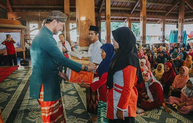 Bupati Ponorogo Ipong Muchlissoni memberikan bingkisan sembako untuk para dhuafa dan KPM PKH di Pendopo Agung Pemkab Ponorogo