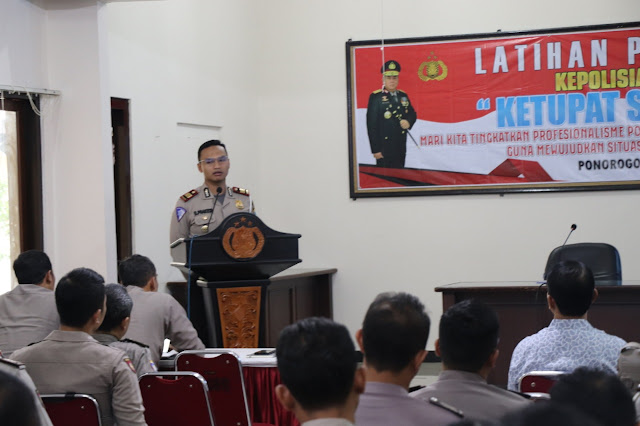 Kapolres Ponorogo AKBP Radiant, SIK, M. Hum menyampaikan tujuan di adakan Oelatihan Pra Operasi Ketupat Semeru 2019 ini, guna mengetahui kesiapan personel dan menyamakan persepsi dalam pelaksanaan Operasi sehingga personel yang terlibat lebih memahami dan  mengetahui tugas serta tanggung jawab.
