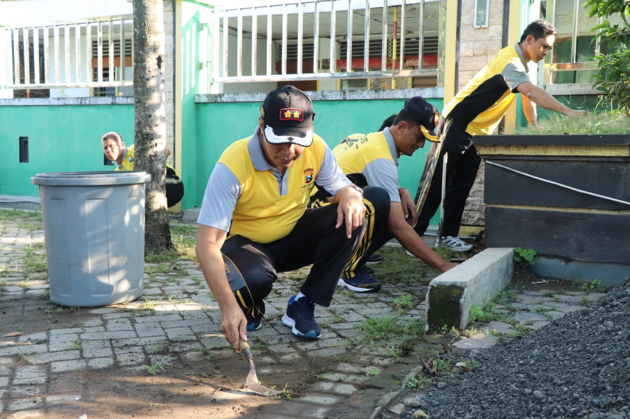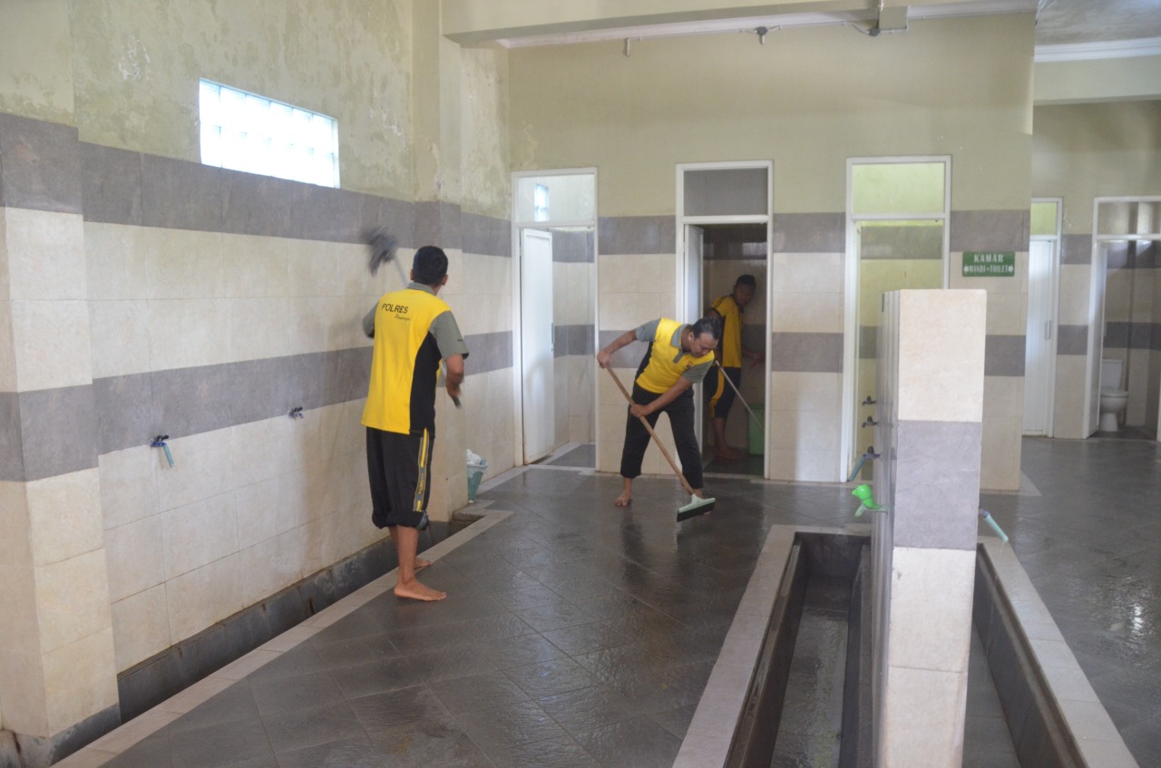 ‘’Kebersihan itu bagian dari iman, jadi sudah sepantasnya rumah ibadah (masjid) ini kita bersihkan setiap waktu dan kalau bisa setiap hari. Secara tidak langsung kalau masjid ini bersih asri, yang beribadah juga merasa nyaman, “pungkas Kapolres Radiant. (sul)