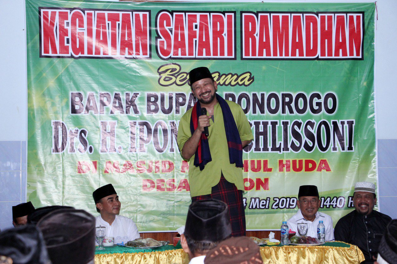 Bupati Ponorogo Drs. H Ipong Muchlissoni menyampaikan safari ramadhan adalah salah satu sarana membangun silaturahmi dan komunikasi antara masyarakat dengan Pemerintah Daerah, sekaligus menyampaikan program pemerintah, progres pembangunan serta menyerap aspirasi dari masyarakat secara langsung.