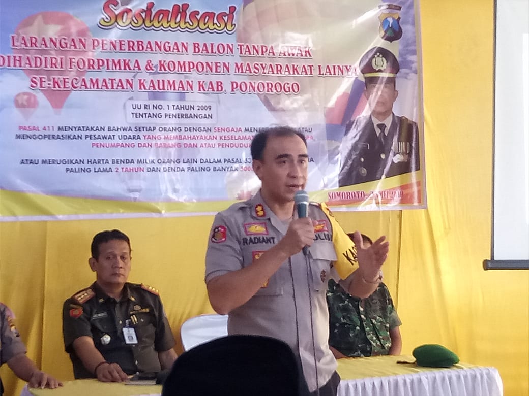 Kapolres Ponorogo AKBP Radiant memberikan sosialisasi larangan penerbangan balon udara tanpa awak
