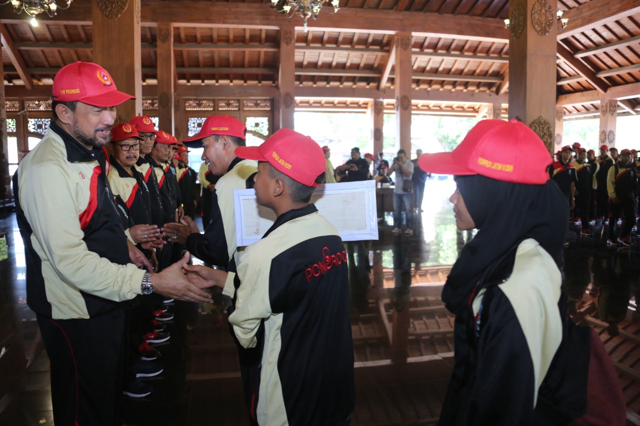 Ponorogo, seputarkita – Pemerintah Daerah Kabupaten Ponorogo melepas sekitar 97 atlet dan 40 pendamping official yang akan mengikuti Pekan Olah Raga Provinsi (Porprov) VI Jawa Timur di Pendopo Agung, Rabu (26/6) kemarin.