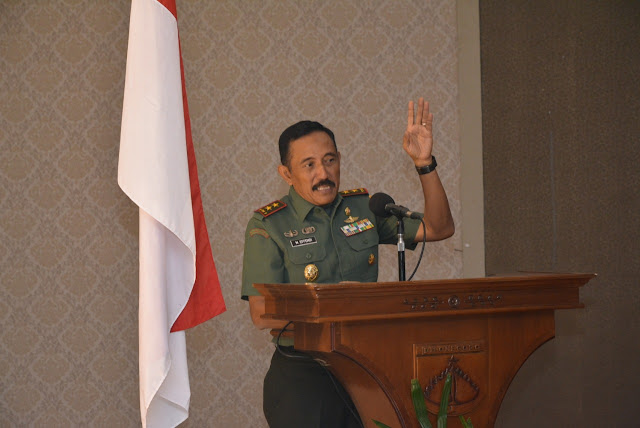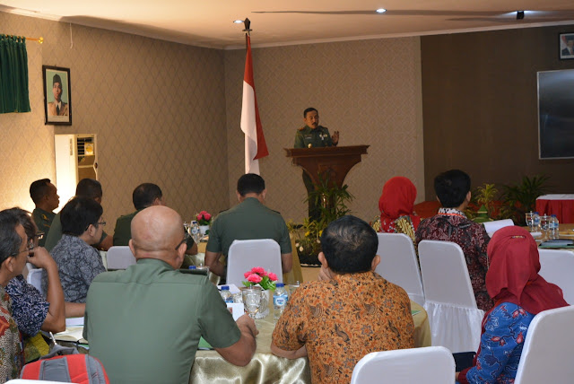 Demikian penyampaian Pangdam IV/Diponegoro Mayjen TNI Mochamad Effendi, S.E., M.M. dihadapan para pejabat Kodam IV/Diponegoro dan pejabat terkait sebelum kegiatan teleconference dengan Kasad dalam rangka Rapat Koordinasi Teknis (Rakornis) TMMD Reguler ke-105, di Aula Denmadam IV/Diponegoro, Kamis (20/06/2019).