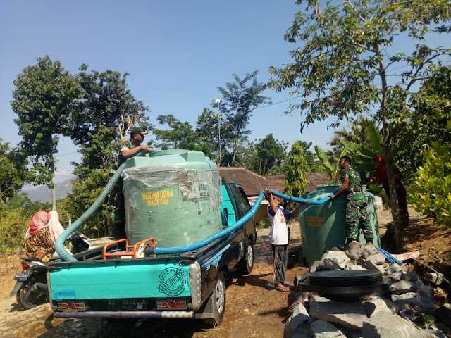 Kami terus berusaha untuk mencarikan solusi dengan mengkomunikasikan bersama BPBD Magetan. Untuk kelancaran dristribusi anggota Babinsa juga kami turunkan mendampingi pendistribusian bantuan air bersih ini. “sambungnya”. (R. 04)