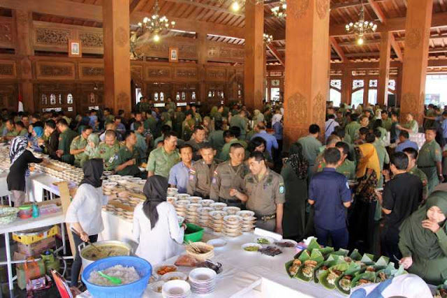 Usai berjabat tangan, para ASN dipersilakan menikmati hidangan yang disediakan di Pendopo Agung Pemkab Ponorogo. Sebanyak 3.000 porsi sate gule kambing, nasi pecel dan bakso lengkap telah disiapkan. Mereka berbaur satu sama lain tak pandang usia maupun pangkat. Semuanya tampak menikmati sajian yang disiapkan. Setelah itu, para PNS langsung kembali ke kantornya masing-masing, meneruskan aktifitasnya untuk bekerja sesuai tugas dan fungsinya. (Adv)