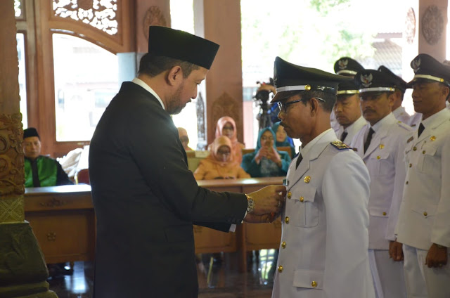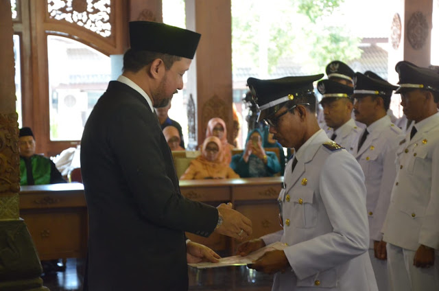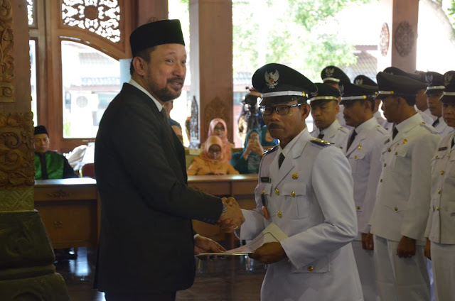 Bupati Ponorogo Ipong Muchlissoni saat melantik Kepala Desa Ngrupit Suherwan di pendopo agung