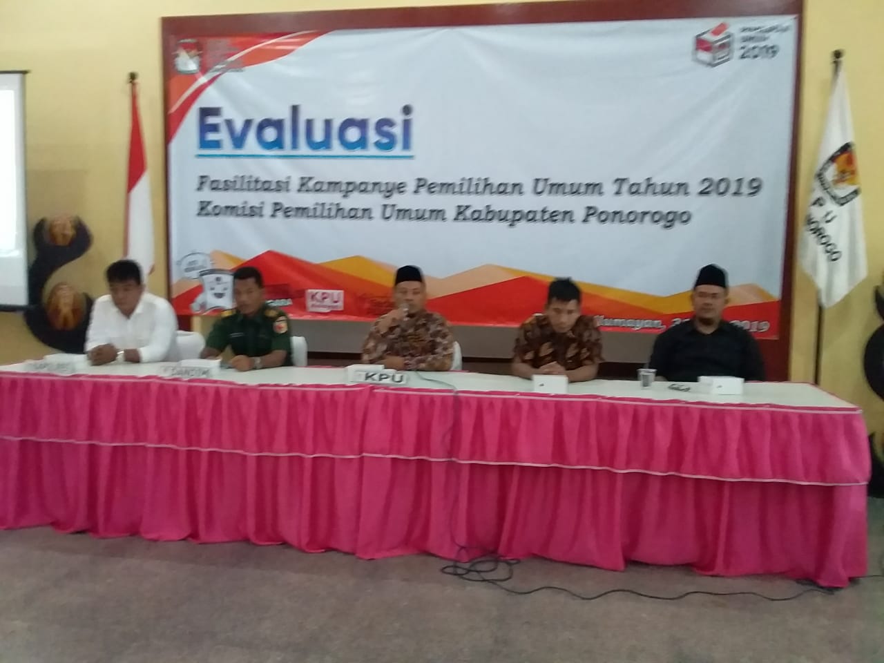 Evaluasi ini bertujuan untuk mengukur KPU dalam menyediakan atau memfasilitasi dalam tahapan kampanye tahun 2019 di Kab. Ponorogo.” Sekaligus melakukan koreksi atas kekurangan, agar kedepannya bisa lebih baik.” paparnya