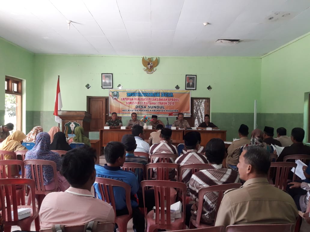 Batituud Koramil 04 Parang Hadiri Musyawarah Desa Laporan Realisasi Apbdes Semester 1 tahun 2019 Desa Sundul