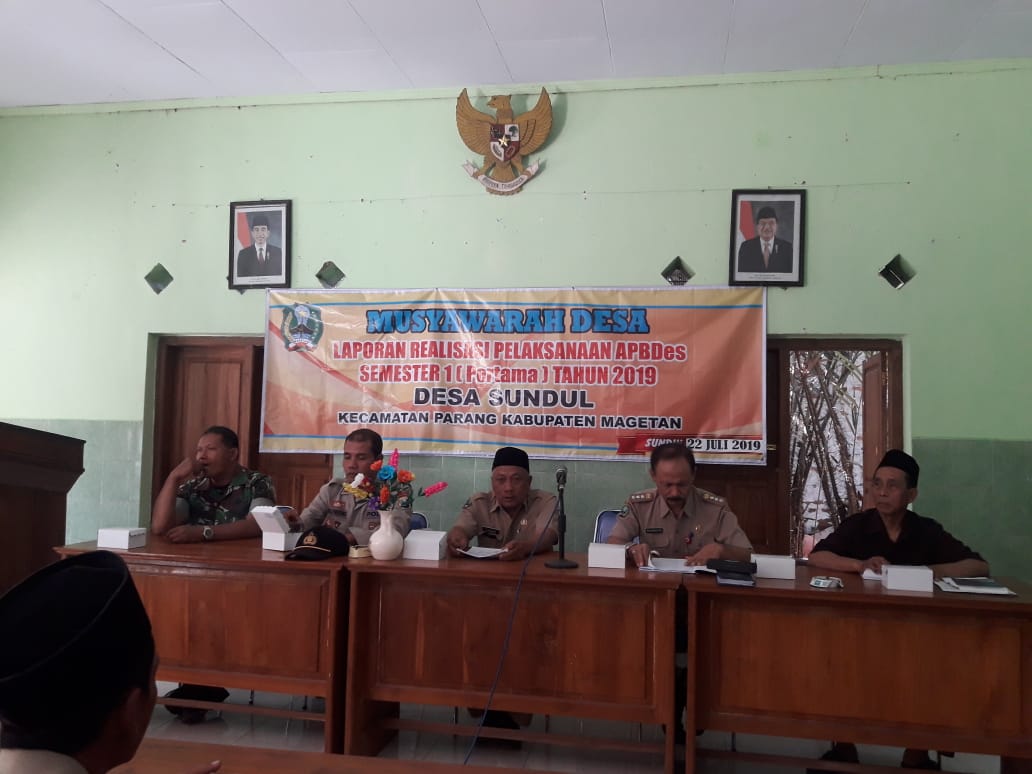 Magetan, Seputarkita – Danramil 0904/04 Parang Kapten Inf Gunawan melalui Batituud Serma Samsi menghadiri Musyawarah Desa laporan realisasi pelaksanaan APBDes semester 1 Tahun 2019 Desa Sundul yang berlangsung di Balai Desa Sundul Kecamatan Parang Kabupaten Magetan. Senin (22/07/2019)