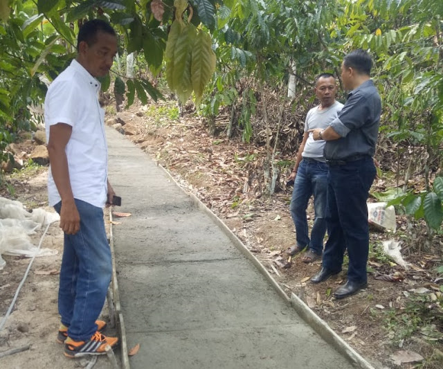 Unit Tipikor Satreskrim Polres Tanggamus memeriksa Fisik Bangunan rabat jalan di Desa Sukapadang