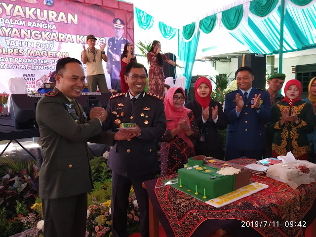Kapolres Magetan, AKBP Rifai diacara itu mengungkapkan, syukuran yang berlangsung di Koramil 0804-10/Kawedanan ini bertema dengan semangat promoter, pengabdian Polri untuk masyarakat, bangsa dan negara.
