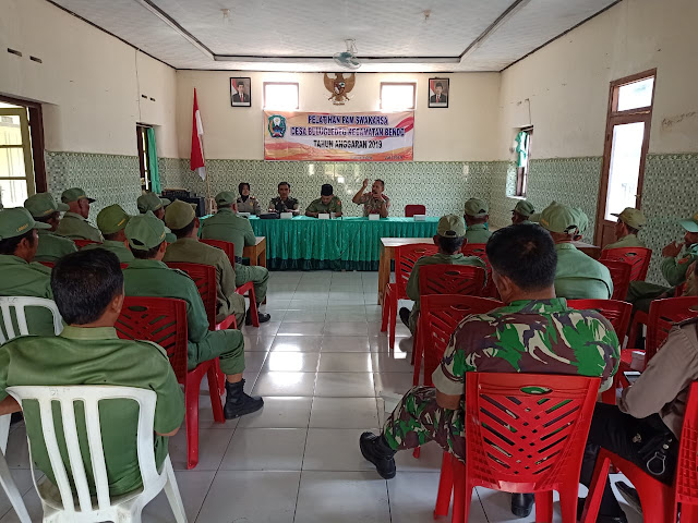 Kegiatan dimulai didalam ruangan dimana anggota Satlinmas yang berjumlah 30 orang mendapat pembekalan dari Danramil 0804/13 Bendo Kapten Inf Sarpan yaitu dengan materi wawasan kebangsaan agar para anggota Satlinmas lebih memahami dan mengerti sejarah berdirinya Negara Kesatuan Republik Indonesia (NKRI) hingga masa-masa setelah kemerdekaan. Sehingga diharapkan para anggota Satlinmas setelah mengetahui dan mengenal sejarah Bangsa Indonesia maka akan lebih mencintai lagi terhadap NKRI dan secara ikhlas terpanggil hatinya untuk ikut serta dalam Belanegara.