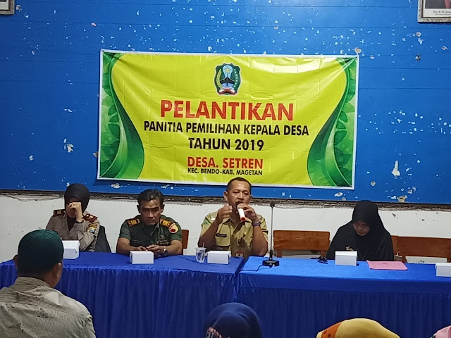 Magetan, Seputarkita – Menjelang Pemilihan Kepala Desa (Pilkades) serentak yang rencana akan diselenggarakan tanggal 27 Nopember tahun 2019 di wilayah Kabupaten Magetan. Untuk Kecamatan Bendo ada 15 Desa yang akan mengukuti Pilkades secara serentak tersebut, untuk itu masing-masing desa yang akan melaksanakan Pilkades tengah merampungkan pembentukan panitia di tingkat desa yang diadakan oleh BPD masing-masing desa. Salah satunya malam ini Desa Setren melaksanakan musyawarah dalam rangka pembentukan panitia pemilihan kepala desa yang bertempat di aula Kantor Desa Setren Kecamatan Bendo. (Senin, 28/07/19)