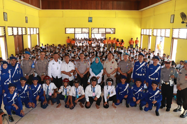 Pada kesempatan tersebut, Kapolres Radiant juga sempat memberikan pertanyaan kepada pelajar dan bagi pelajar yang bisa menjawabnya diberikan hadiah helm yang diberikan langsung oleh Kapolres Radiant. (Sul)