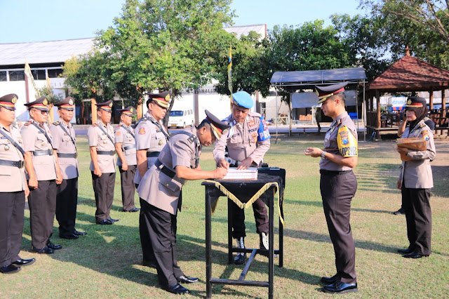 Madiun, Seputarkita – Kapolres Madiun AKBP RURUH WICAKSONO. S.I.K. S.H M.H memimpin upacara serah terima jabatan Kabag Ops. kasat Lantas, Kapolsek Dolopo. Kapolsek Kare, Kapolsek Wungu. kapolsek Balerejo dan Kapolsek Kebonsari dilapangan Tri Brata Polres Madiun. Rabu, 28 Agustus 2019 pk.08.00 Wib.