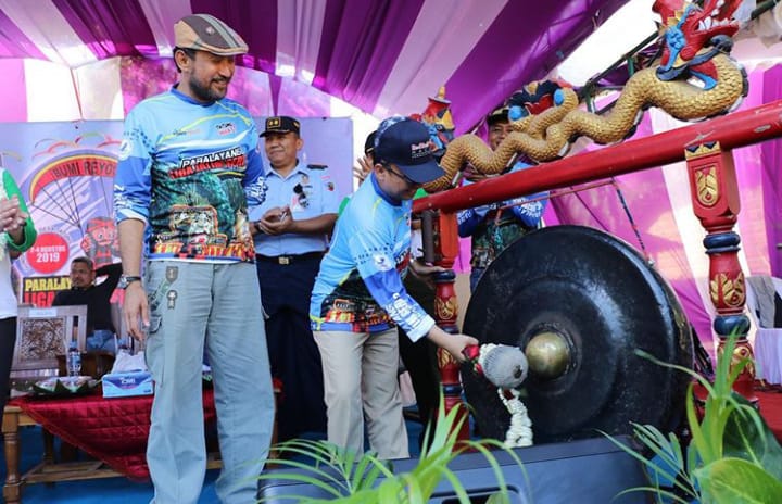 Ponorogo, Seputarkita – Liga Paralayang Jatim Seri 2 yang digelar di jalan Arjuna Desa Tatung Kecamatan Balong Kabupaten Ponorogo ditutup secara resmi dengan pemukulan gong oleh Sekjen Kementrian Desa Tertinggal dan Transmigrasi RI DR. H. Anwar Sanusi didampingi Bupati Ponorogo Drs. Ipong Muchlissoni, Minggu (4/8).