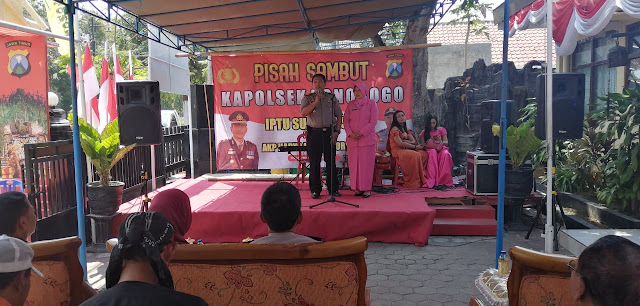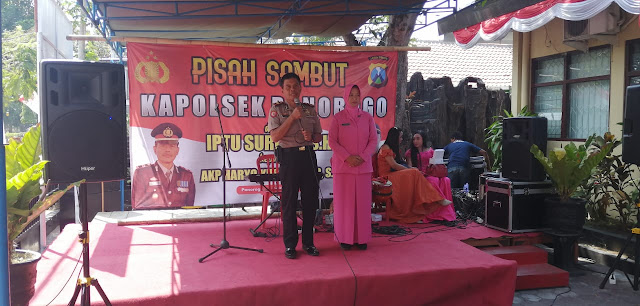 Kapolsek Ponorogo lama Iptu Suroso, SH saat ini menjabat Kapolsek Ngrayun Polres Ponorogo, dalam sambutannya berharap tugas-tugasnya yang masih kurang