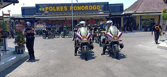 Kegiatan patroli gabungan TNI-Polri tersebut, didahului dengan apel di halaman Mapolres Ponorogo yang dipimpin oleh Kabag Ops. Polres Ponorogo Kompol Basuki Nugroho dan pelaksaan patroli skala besar dipimpin oleh Kasat Sabhara Polres Ponorogo AKP Djoko Winarto.