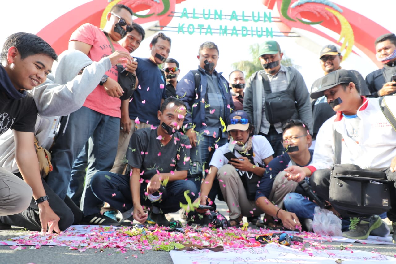 Seluruh wartawan ini juga bersama-sama meletakkan kartu pers serta menaburi bunga mawar. Sikap ini adalah sebagai simbol bahwa protes atas upaya pembungkaman dan pembunuhan kebebasan pers.