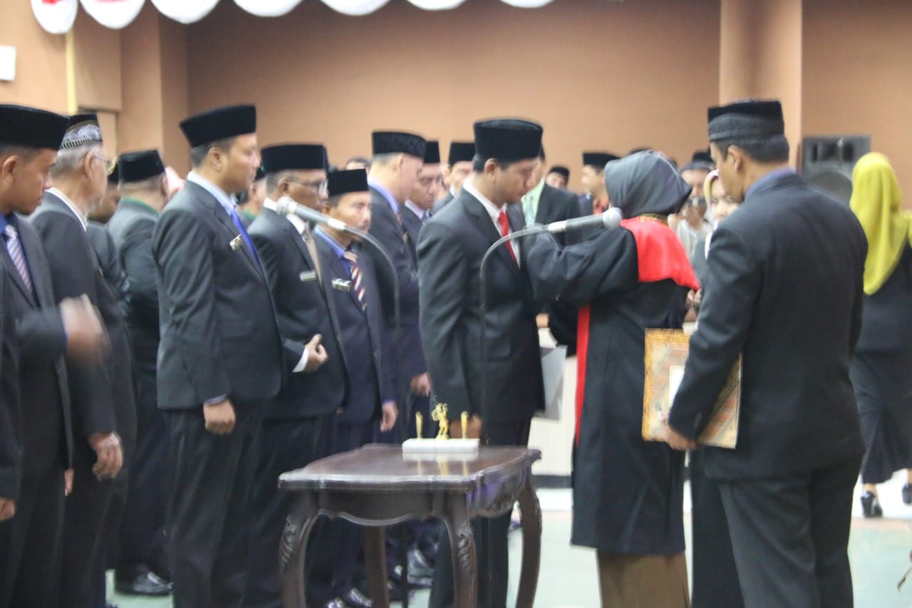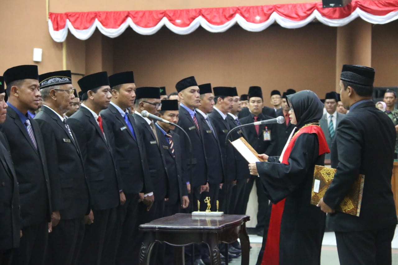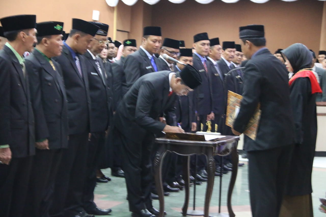 Yang dilanjutkan prosesi Pelaksanaan pengambilan Sumpah Janji anggota DPRD Kabupaten Ponorogo terpilih periode 2019-2024 oleh Kepala Pengadilan Negeri Ponorogo Dr. Henny Trimira Handayani, SH, MH dan dilanjutkan dengan penandatanganan berita acara serta penyematan pin.