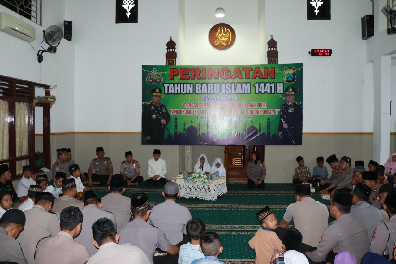 Ponorogo, Seputarkita – Memperingati Tahun Baru Islam 1 Muharam 1441 H, Polres Ponorogo menggelar kegiatan keagamaan dan menyantuni anak yatim di masjid Uswatun Khasanah Mapolres setempat, Jum’at (6/8) malam.