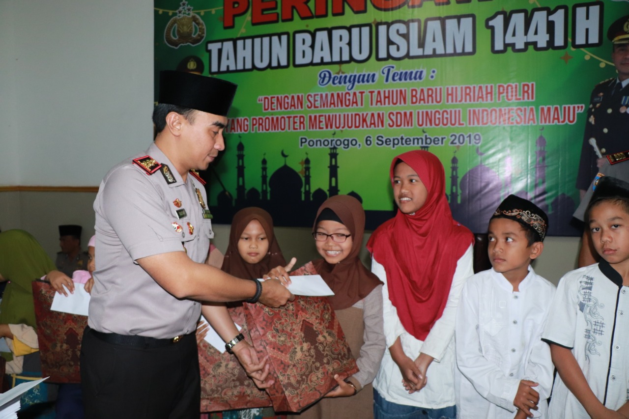 Dalam kegiatan dengan tema “Dengan Semangat Tahun Baru Hijriyah Polri Yang Promoter Mewujudkan SDM Unggul Indonesia Maju” tersebut dihadiri oleh Kapolres Ponorogo AKBP Radiant, SIK, M.Hum, Waka Polres Ponorogo Kompol Indah Wahyuni, SH, MH, PJU Polres Ponorogo, Anggota Polres Ponorogo, PP Polri, Pengurus Panti Asuhan dan Anak Yatim Piatu dan Warga sekitar. Yang dimulai dengan pembacaan Ayat Suci Al-Quran dan Qotmil Quran yang dipimpin Kabag Sumda Polres Ponorogo Kompol Bahrun Nasikin, S.Ag, MA.