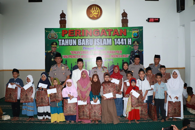 Ponorogo, Seputarkita – Memperingati Tahun Baru Islam 1 Muharam 1441 H, Polres Ponorogo menggelar kegiatan keagamaan dan menyantuni anak yatim di masjid Uswatun Khasanah Mapolres setempat, Jum’at (6/8) malam.