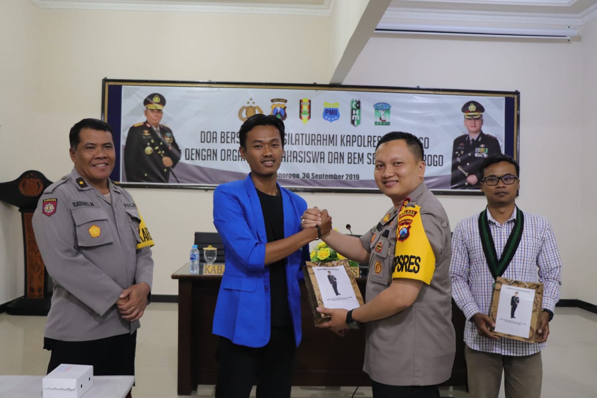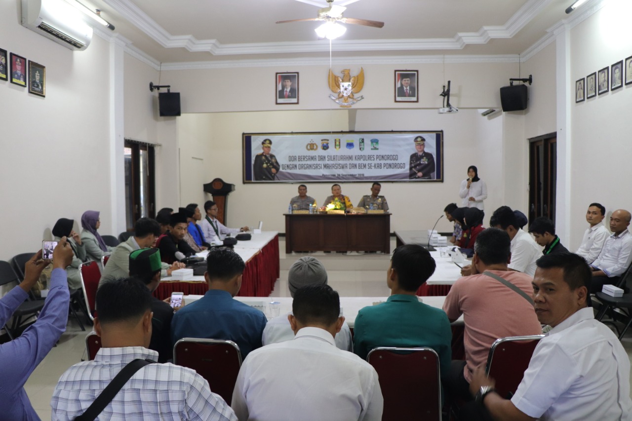 Ponorogo, Seputarkita – Polres Ponorogo menggelar doa bersama dan silaturahmi dengan sejumlah elemen mahasiswa di Mapolres setempat, Senen (30/9).