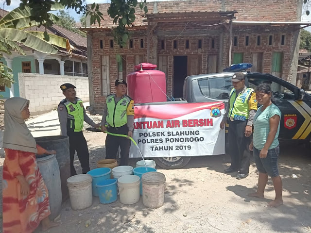Sementara itu, Kepala Desa Broto Erika Dwi Atmoko mengapresiasi dan mengucapkan terima kasih atas dropping air bersih yang dilakukan petugas dari Polsek Slahung.