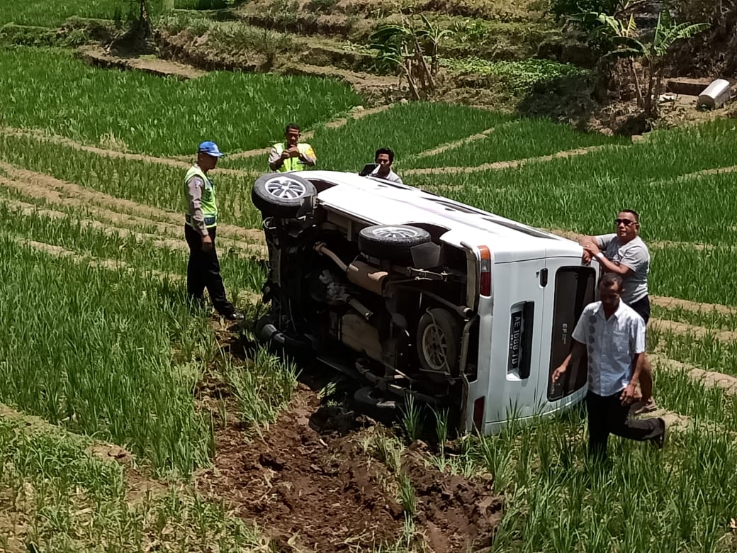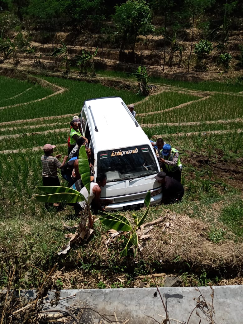 “Saat melaju sesampainya di Dukuh Secinde, Desa Plunturan, pengemudi hendak mendahului kendaraan lain. Namun karena dari arah barat ada kendaraan sepeda motor, pengemudi membanting setir ke arah kanan dan terperosok terguling langsung masuk ke areal persawahan, “kata Edi Sucipta.