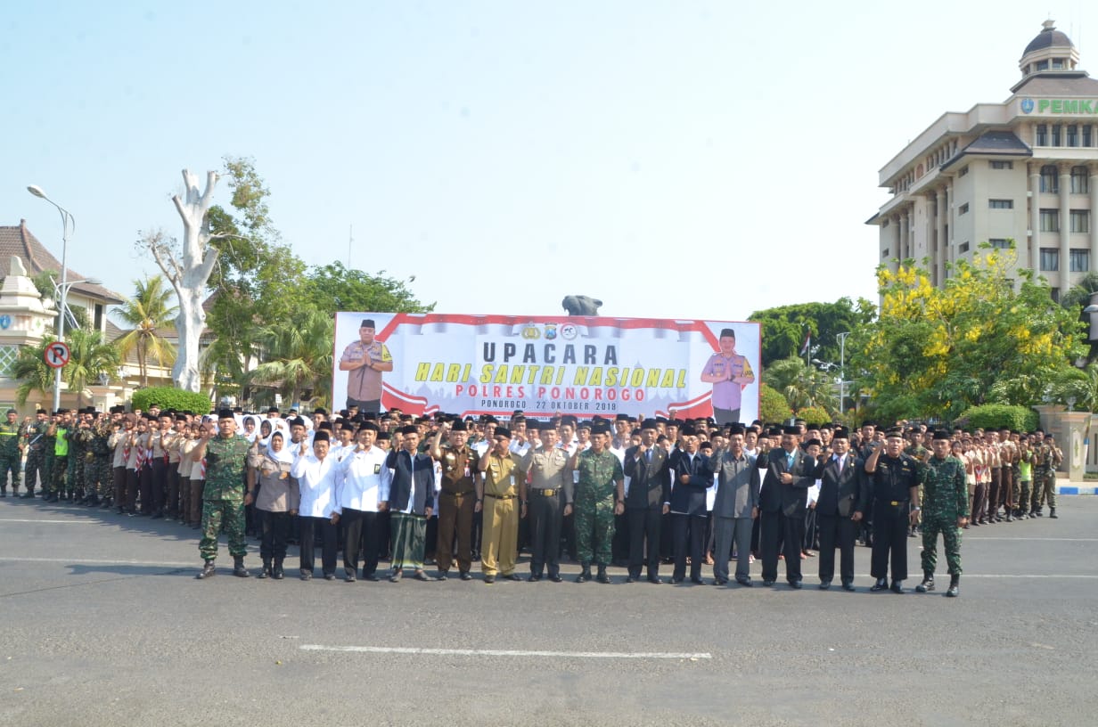 Kapolres Ponorogo AKBP Arief Firianto,SH, SIK, MM selaku Inspektur Upacara dalam amanatnya menyampaikan, Pemmerintah melalui Keputusan Presiden Nomor 22 Tahun 2015 telah menetapkan tanggal 22 Oktober sebagai Hari Santri. Penetapan tanggal 22 Oktober merujuk pada tercetusnya “Resolusi Jihad” yang berisi fatwa kewajiban berjihad demi mempertahankan kemerdekaan Indonesia. Resolusi jihad ini kemudian melahirkan peristiwa heroik tanggal 10 Nopember 1945 yang diperingati sebagai Hari Pahlawan.