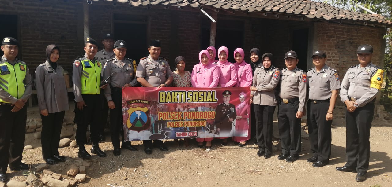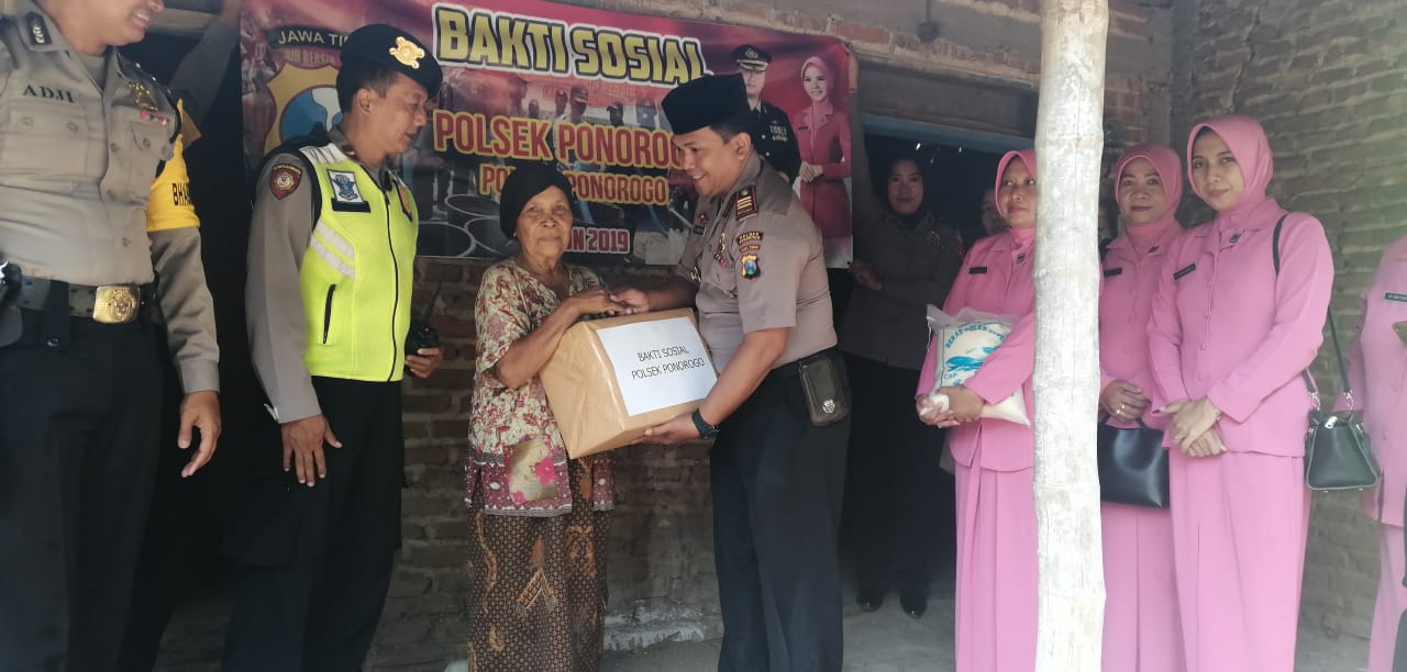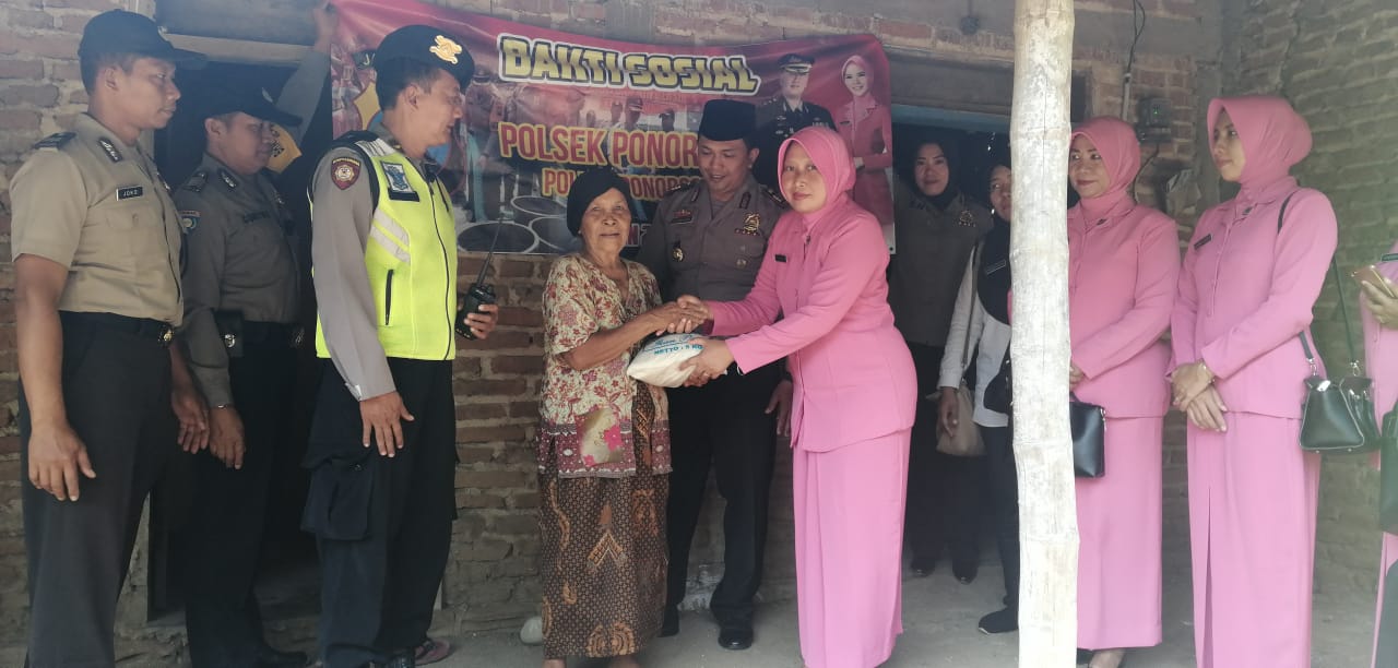 Kapolsekta Ponorogo AKP Haryo Kusbintoro, SH didampingi Ketua Bhayangkari ranting Kota Ponorogo Denik Silvia Haryo, S. Sos, M. Si menyampaikan, sebagai bentuk rasa empati kepedulian terhadap sesama, saling berbagi, petugas dari Polsekta bersama Ranting Bhayangkari Kota Ponorogo melaksanakan bakti sosial memberikan bantuan kepada warga masyarakat yang kurang mampu.