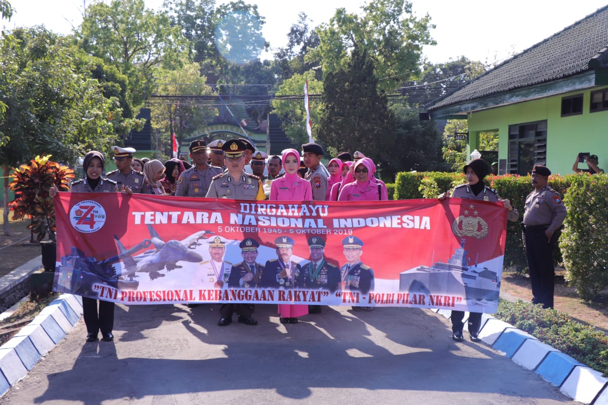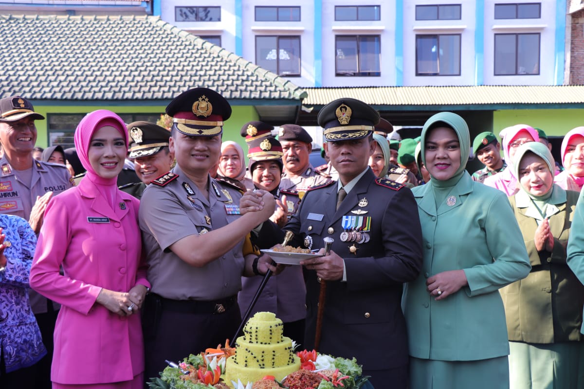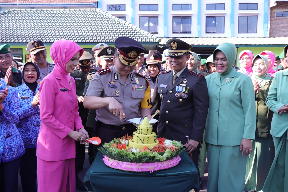 Kunjungan Kapolres Ponorogo AKBP Arief Fitrianto, SH, SIK, MM didampingi Bhayangkari Ponorogo Inanda Arief, Waka Polres Ponorogo Kompol Indah Wahyuni, SH, PJU Polres beserta anggota juga membawa tumpeng yang diserahkan kepada Dandim 0802/ Ponorogo Letkol Inf Sigit Sugiharto didampingi Ketua Persit KCK Cabang XVI Kodim 0802/ Ponorogo, Kasdim 0802/ Ponorogo Mayor Inf M. Yusuf, Perwira staf Kodim 0802/ Ponorogo, Anggota Kodim 0802/ Ponorogo.