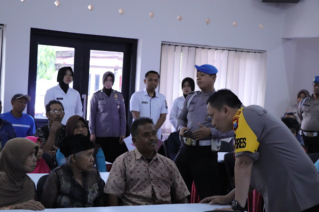 Kapolres Ponorogo AKBP Arief Fitrianto saat memberikan arahan dan mengecek warga masyarakat yang ikut Screening Operasi Katarak dalam rangka bhakti sosial kesehatan Polri di aula Mapolres