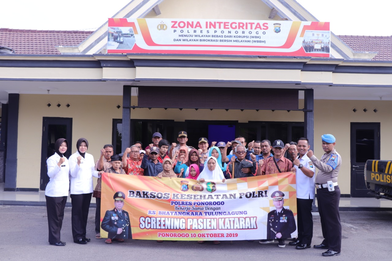 Kapolres Ponorogo AKBP Arief Fitrianto, SH, SIK, MM menyampaikan, kegiatan ini merupakan proses awal dari bhakti social kesehatan operasi katarak yang akan diselenggarakan secara serentak oleh Kesehatan Mabes Polri.