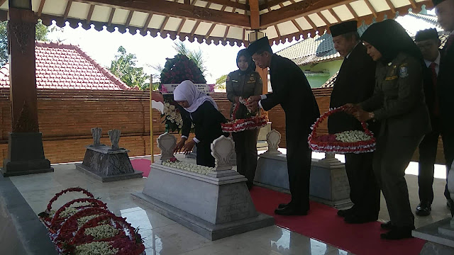 Bersama Bupati Magetan Suprawoto dan pejabat Forkopimda Jatim, Khofifah memimpin penghormatan, mengheningkan cipta dan juga tabur bunga ke makam pahlawan nasional tersebut. “Beliau adalah gubernur pertama Jawa Timur maka, kita ziarah ke sini karena besok adalah HUT Jawa Timur ke 74. Kita semua diajarkan guru-guru kita bahwa sebagai bangsa yang besar adalah bangsa yang menghargai jasa para pahlawannya,” kata Khofifah.