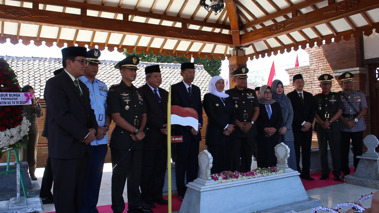 Bersama Bupati Magetan Suprawoto dan pejabat Forkopimda Jatim, Khofifah memimpin penghormatan, mengheningkan cipta dan juga tabur bunga ke makam pahlawan nasional tersebut. “Beliau adalah gubernur pertama Jawa Timur maka, kita ziarah ke sini karena besok adalah HUT Jawa Timur ke 74. Kita semua diajarkan guru-guru kita bahwa sebagai bangsa yang besar adalah bangsa yang menghargai jasa para pahlawannya,” kata Khofifah.