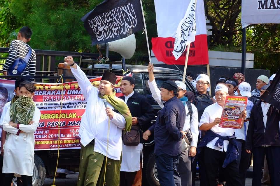 Dalam orasinya yang penuh semangat itu, Imam menyerukan jihad ke Papua, “Disini kita menuntut tegaknya keadilan, para Guru Ngaji, para Da’i, saudara saudara kita sesama muslim di Papua telah tertumpah darahnya, kalau memang pemerintah sudah tidak mampu mengatasi kondisi ini, kita siap jihad ke Papua. Siapkah saudara saudara berangkat jihad ke papua?” seru Imam yang disusul dengan pernyataan siap dari seluruh peserta aksi.