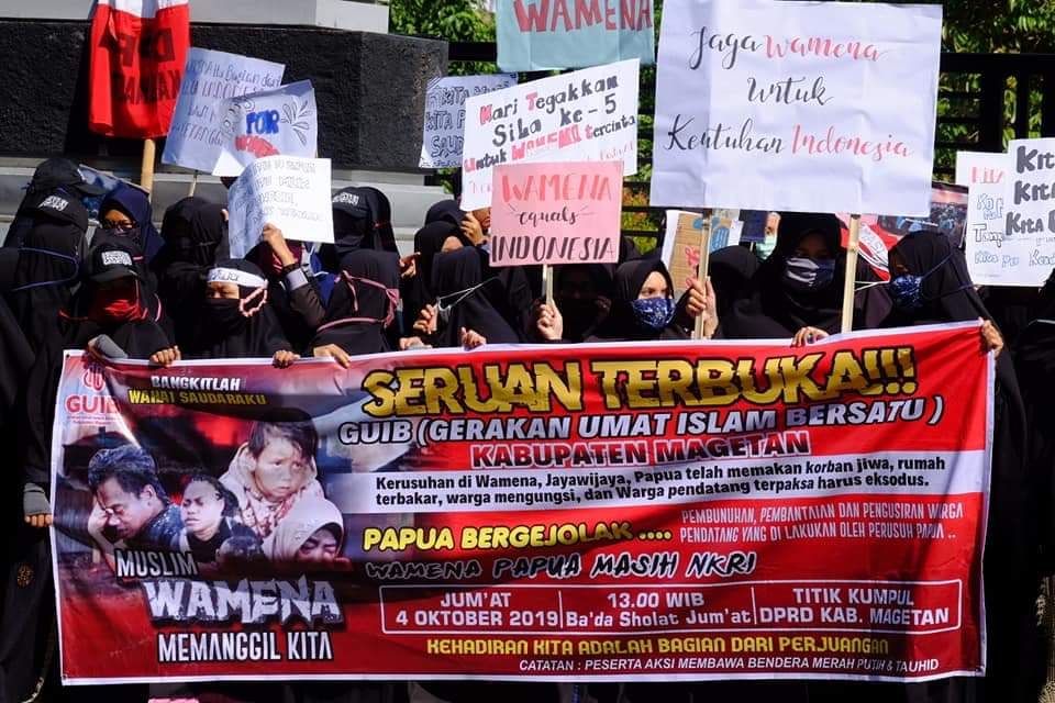 Dari keadaan yang mengenaskan tersebut, GUIB menuntut Presiden Joko Widodo untuk segera menuntaskan kasus kerusuhan di Papua. “Kami mewakili ummat Islam Magetan menuntut agar pemerintah dan aparat keamanan segera menangkap aktor intektual dan seluruh pelaku kerusuhan Papua, khususnya para perusuh Wamena. Kalau tidak bisa penuhi tuntutan ini lebih baik Presiden mundur dari jabatannya,” ujar Ustadz Imam Yudhianto, SH MM, Ketua GUIB Magetan.